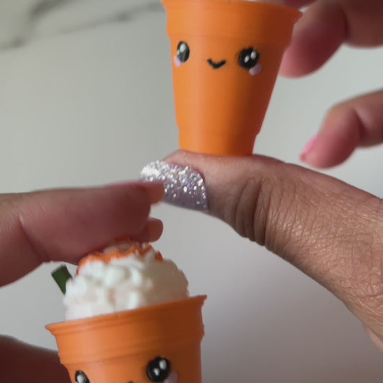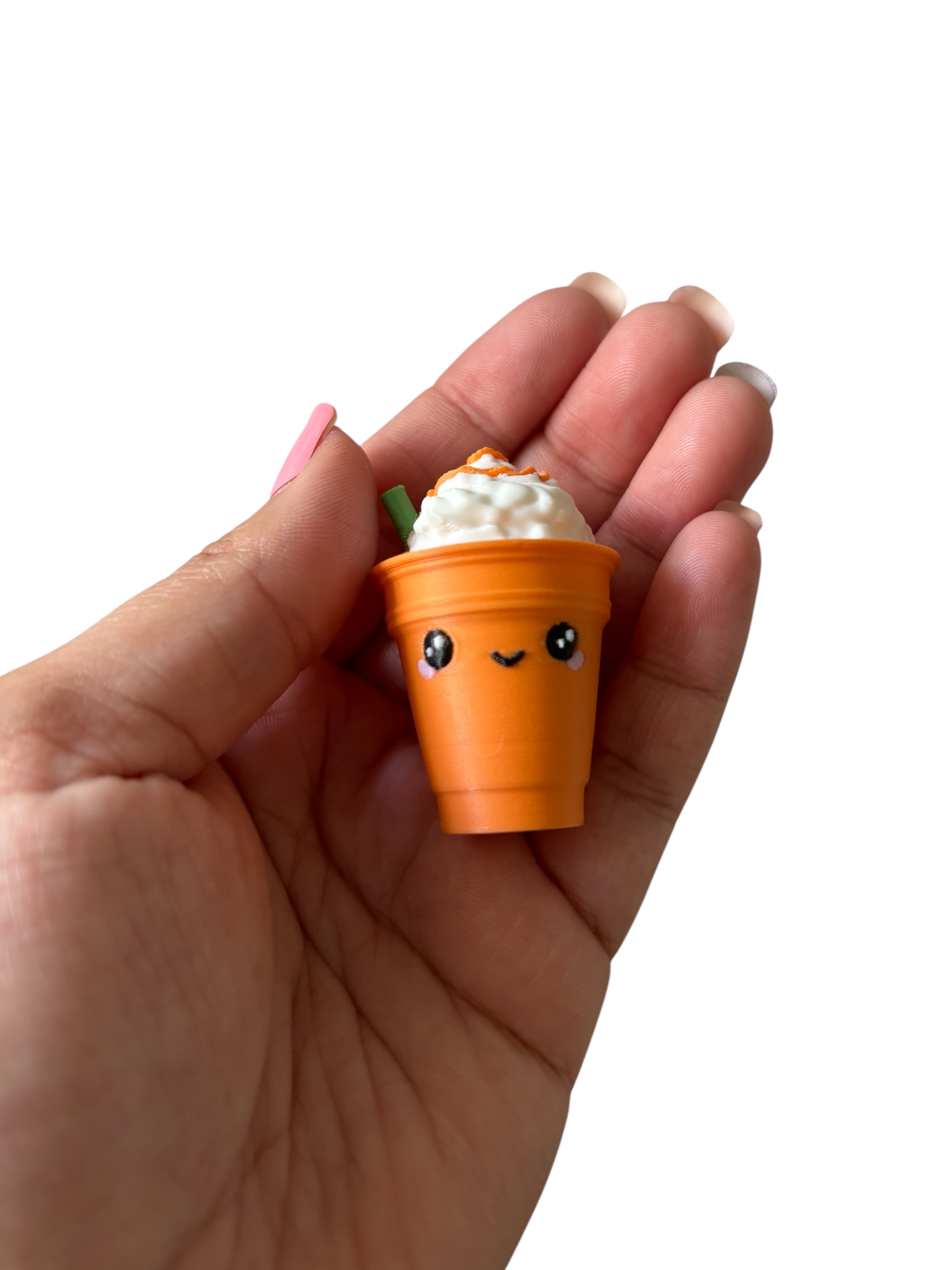 Cozy fall vibes in the palm of your hand! This Pumpkin Spice Frapp Clicky is topped with fluffy whipped cream, a swirl of pumpkin drizzle, and a little green straw for the perfect seasonal touch. With its kawaii face and satisfying clicks, it’s the ultimate stress-relief fidget for autumn lovers.